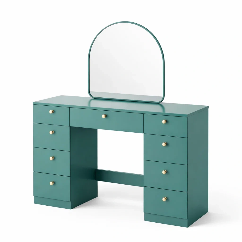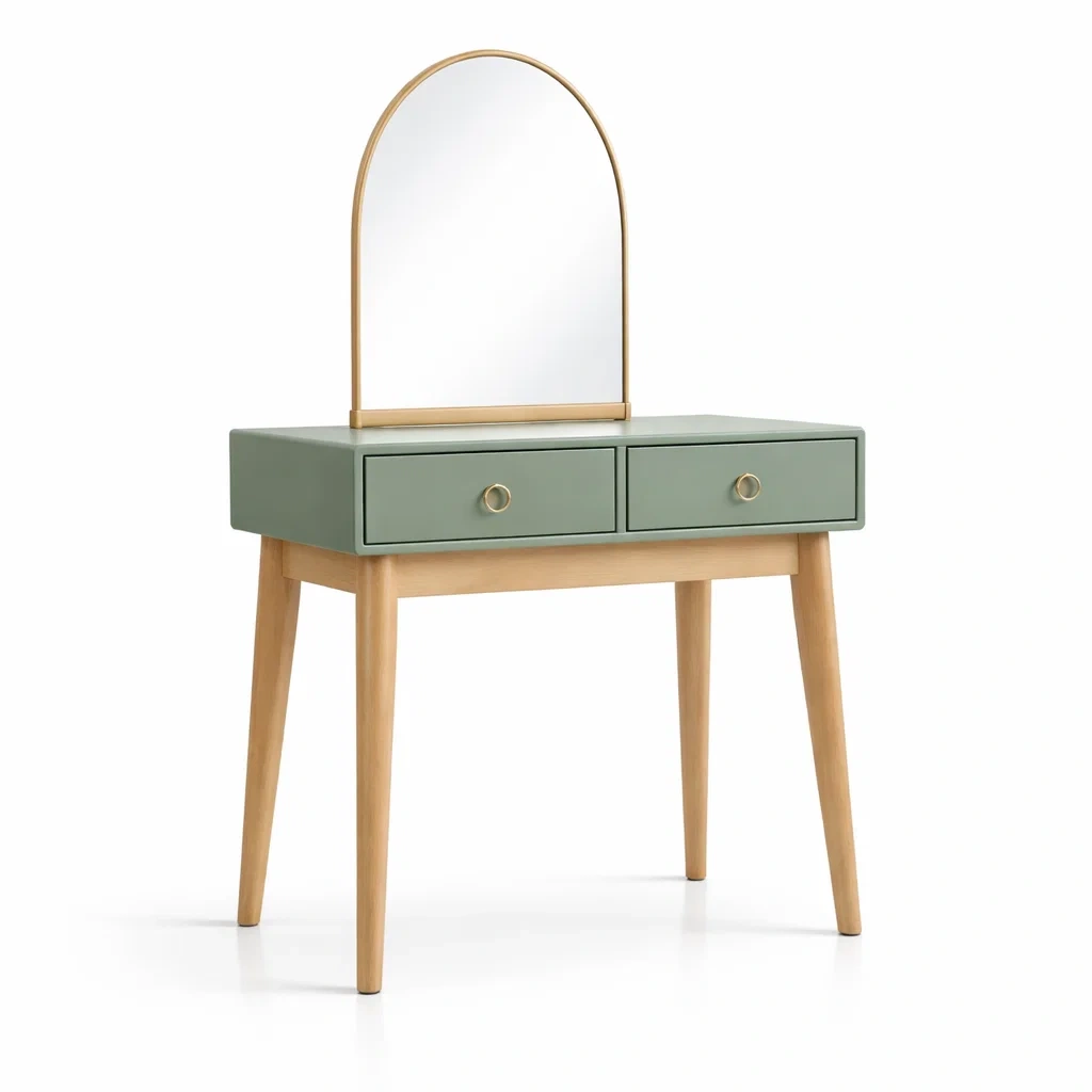 Coiffeuse en bois avec miroir arc et tiroirs vert