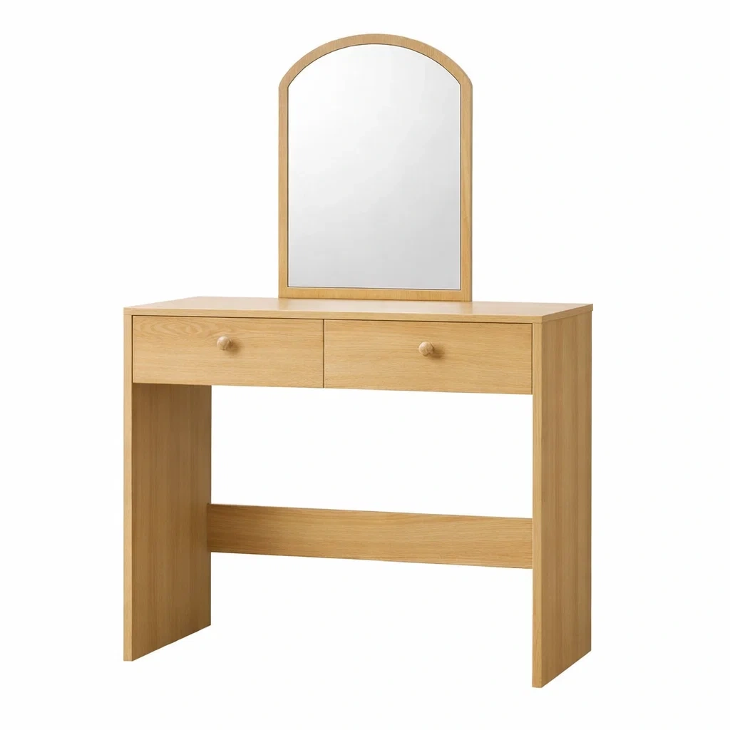 Coiffeuse en chêne avec miroir et tiroirs