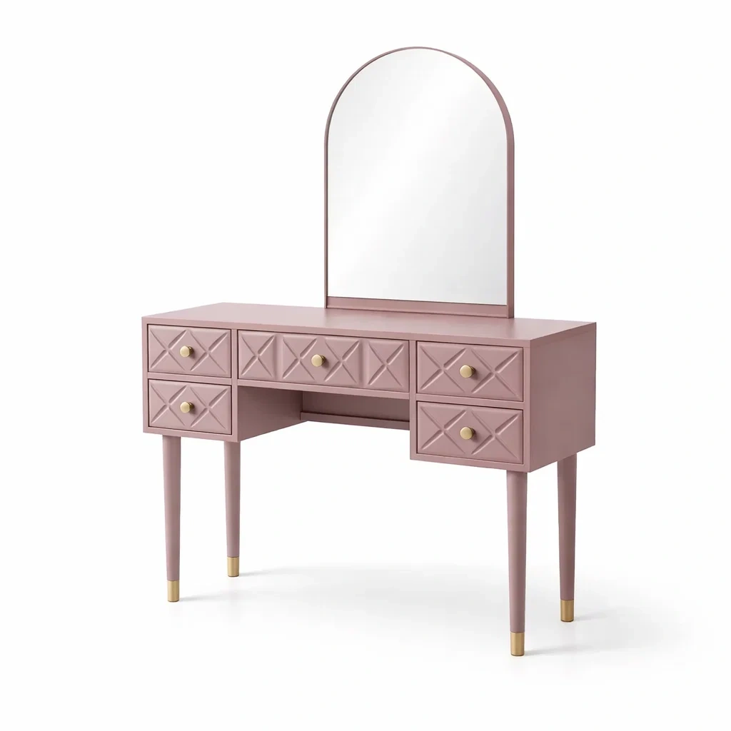 Coiffeuse en bois rose avec miroir et tiroirs