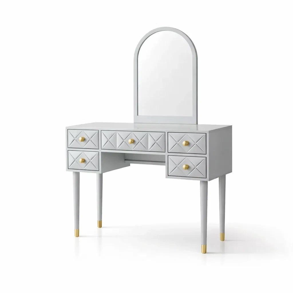Coiffeuse en bois mdf gris avec miroir et tiroirs