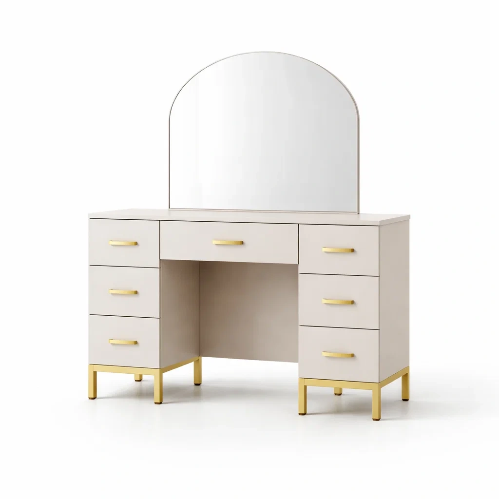 Coiffeuse en bois aggloméré avec miroir en verre trempé de 5 mm.